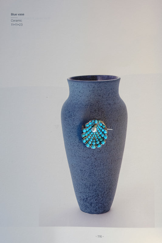 Victorian Turquoise & Pearl Clam Brooch