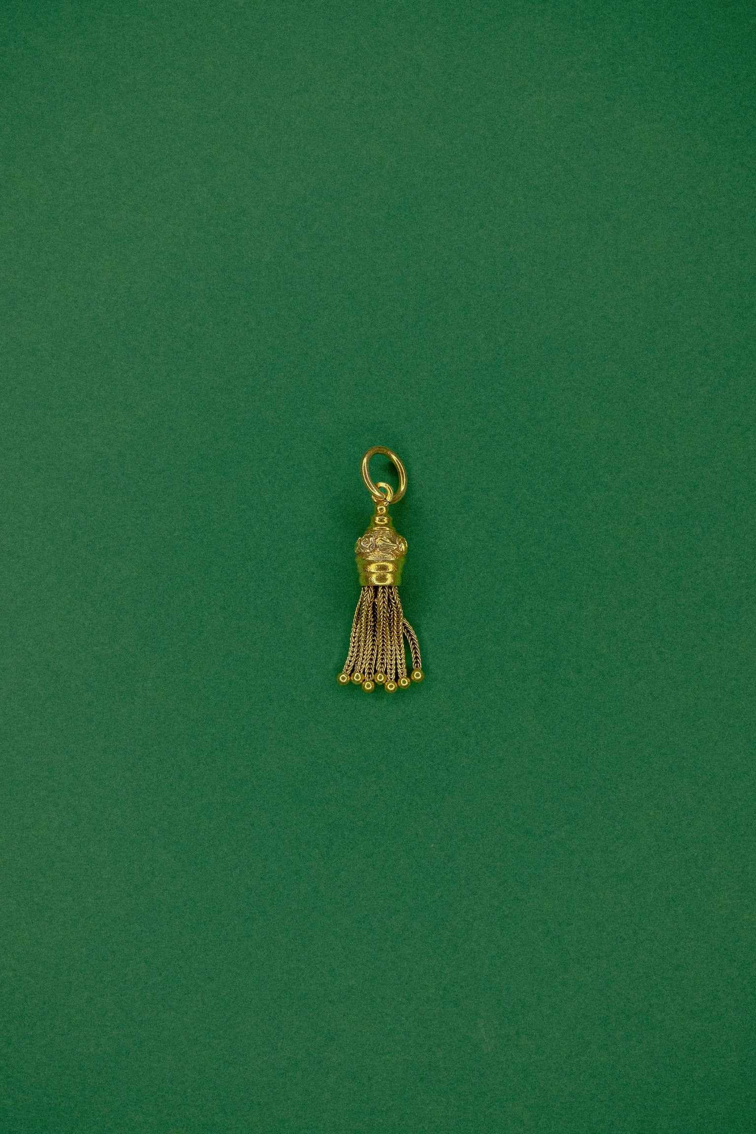 Enhance your jewellery collection with our Antique Gold Tassel Charm Pendant. Crafted from high carat yellow gold, this charming piece features a repeating floral motif on the head, perfectly accentuating the bunch of rope work tassels below. With its intricate design and classic appeal, this pendant is a sweet and sophisticated addition that will add personality to any outfit. Invest in timeless elegance and elevate your style with our Antique Gold Tassel Charm Pendant today.